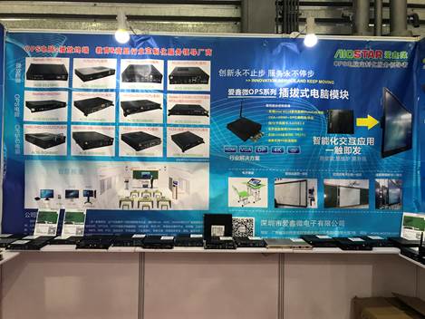 深圳市愛鑫微電子有限公司作為本次展會展商之一,攜旗下眾多OPS電腦產品精彩亮相新國際博覽中心,愛鑫微在教育和商顯行業的OPS電腦+播放終端的產品設計創意和產品質量,吸引眾多行業人士與參展觀眾圍觀,愛鑫微嵌入式主板,OPS可插拔電腦模塊的解決方案成為本次展會的焦點。