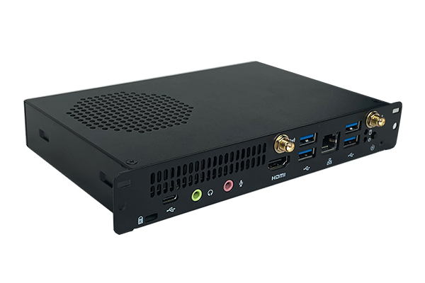 | 1.OPS插拔模塊式安裝 2.Alder Lake-uIntel I3 1220P/Intel I5 1240P/Intel I7 1360P 3.支持4組USB(2組USB3.1 /2組USB3.0) 4.支持萬兆網口、支持TYPE-C 5.支持1xHDMI /OPS接口支持HDMI 2.0+DP1.4 6.支持4K/5K/8K(3840*2160、5120*2880、7680*4320) 7.支持網絡喚醒、EUP節能、上電開機、看門狗等 8.產品符合CE FCC ROHS規范 9.尺寸:180MM*119MM*30M |